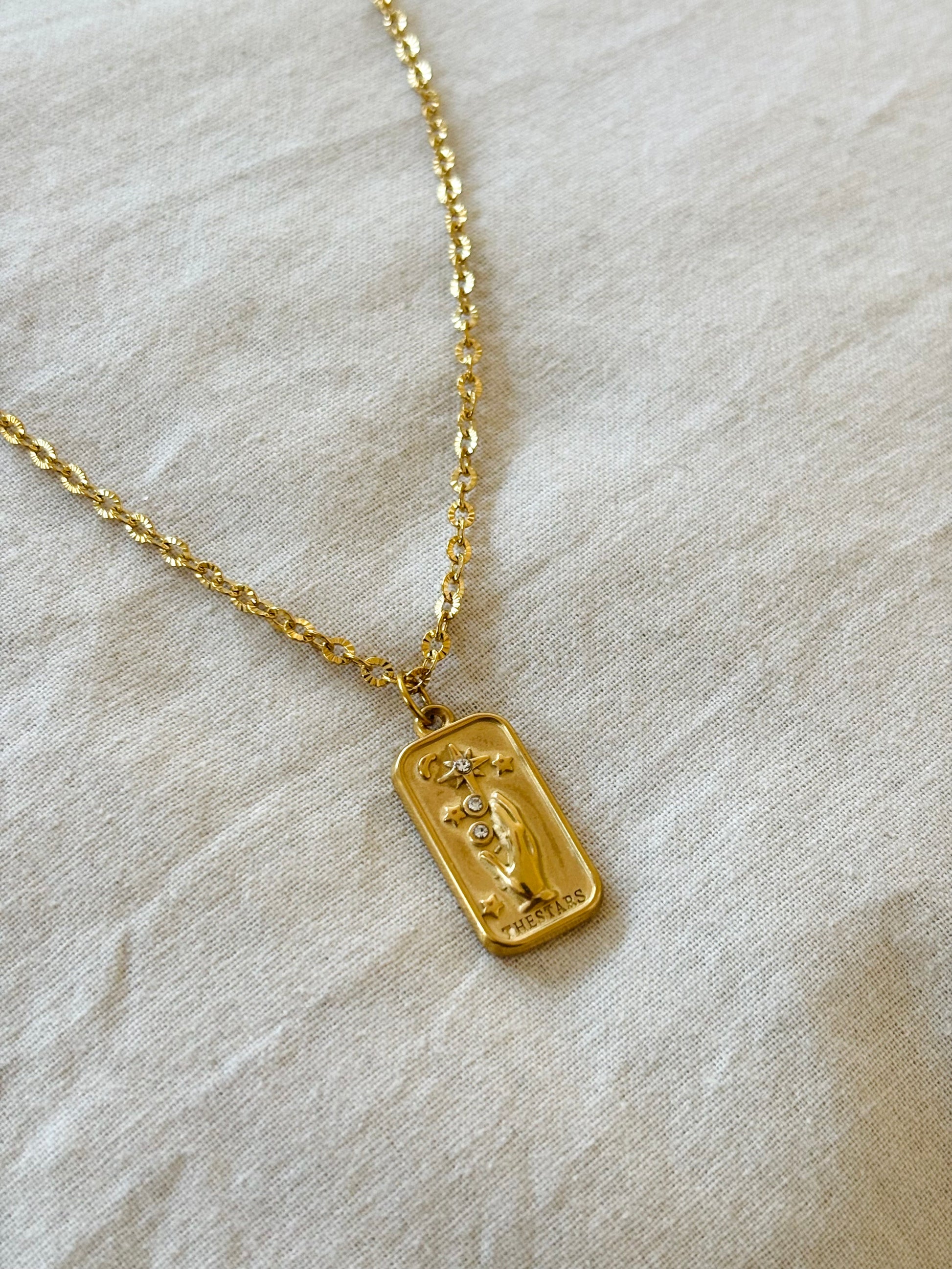Ajoutez une touche céleste à votre look avec notre collier en acier inoxydable, orné d'une médaille carrée gravée de l'inscription "The Stars".